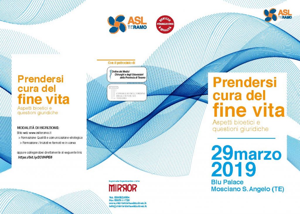 Venerdì 29 marzo p.v. si terrà, presso il Blu Palace di Mosciano S.Angelo dalle 9:00 alle 18:00, un importante congresso, organizzato dalla ASL di Teramo, dal titolo “Prendersi cura del […]