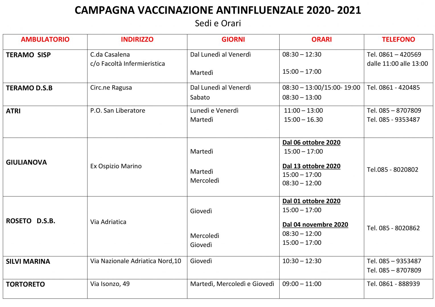 Da domani, ambulatori aperti alla ASL di Teramo per eseguire la vaccinazione anti influenzale.