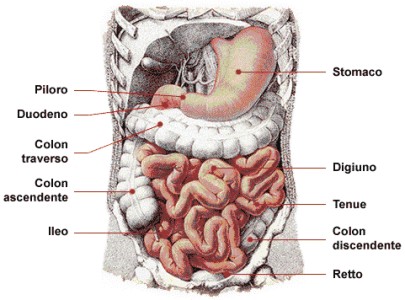 Lo stomaco, situato centralmente nella parte superiore della cavità addominale, al di sotto del diaframma, può essere diviso in tre parti: